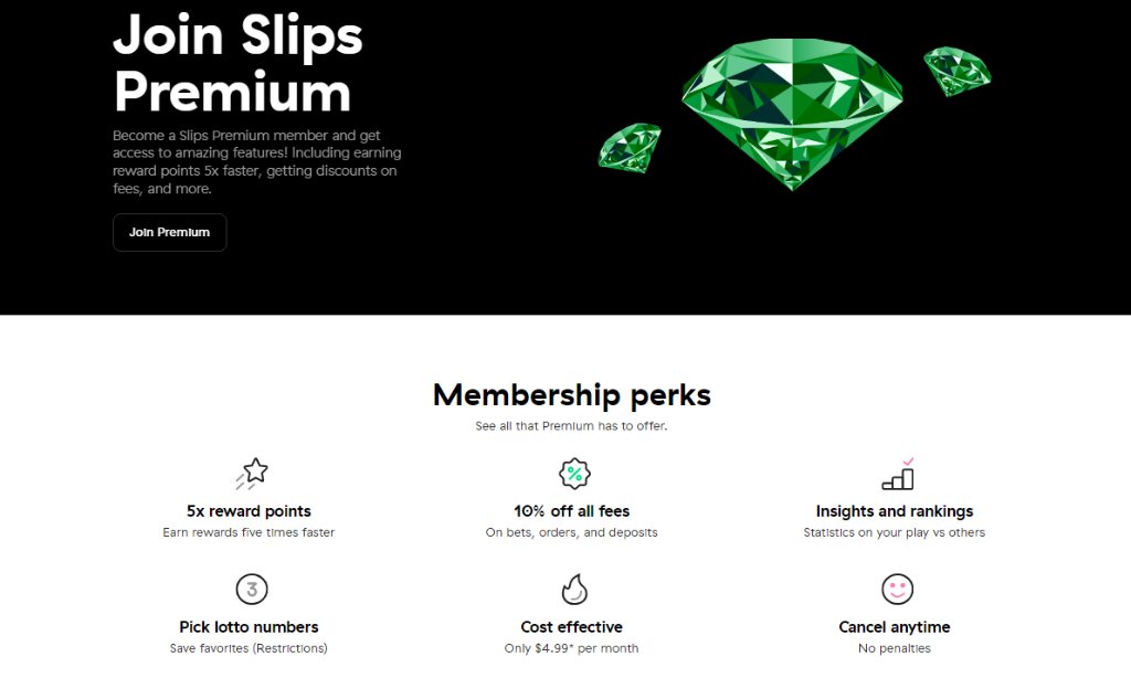 What sets Slips.com apart is not just its core services but also its Premium membership option. For a monthly fee, Premium members enjoy benefits like earning reward points five times faster, receiving discounts on transaction fees, and getting access to detailed performance insights and rankings. This membership is designed to enhance the user experience, making it more rewarding and cost-effective.